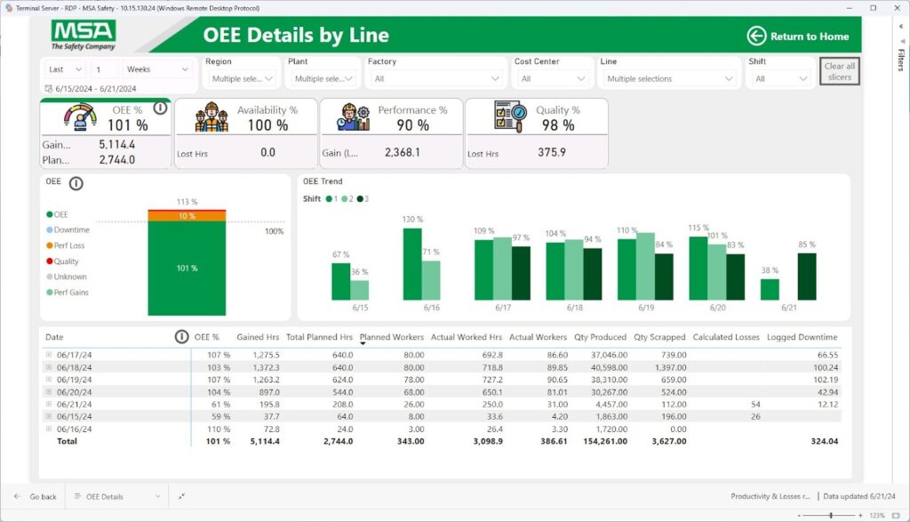 • An OEE and efficiency summary for plant and regional leaders